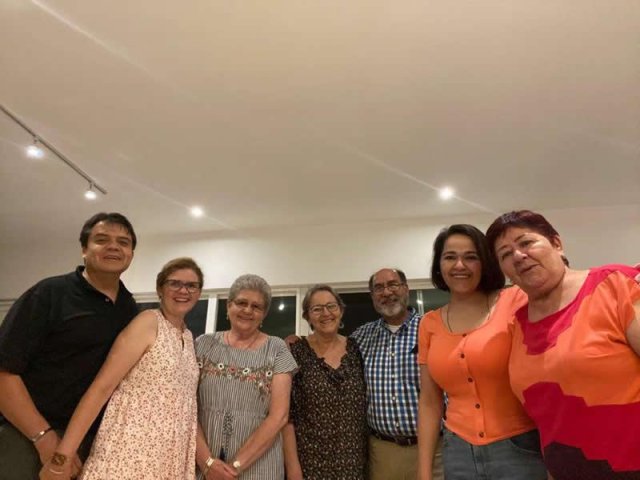 Reunión del Cenáculo luego de la misa en Acción de Gracias por el segundo aniversario como Cenáculo María Reina de La Paz. La misa la ofició el Monseñor Padilla quien luego nos acompañó a los hermanos en la merienda.
