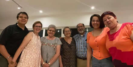 Reunión del Cenáculo luego de la misa en Acción de Gracias por el segundo aniversario como Cenáculo María Reina de La Paz. La misa la ofició el Monseñor Padilla quien luego nos acompañó a los hermanos en la merienda.